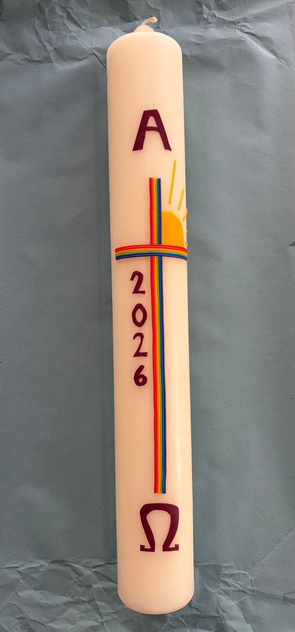 Die Osterkerze der Neupfarrkirche hat dieses Jahr wieder einmal Friderike Hofmeister gestaltet. Wir danken ihr herzlich!