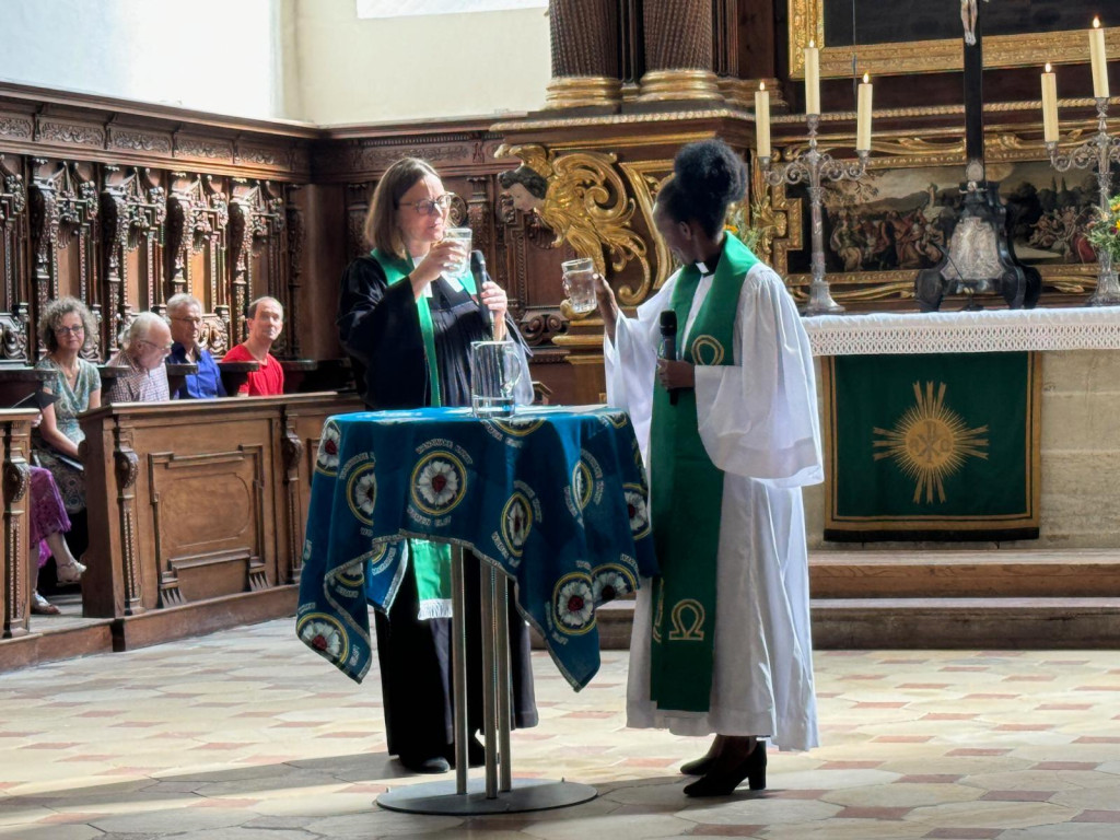 Afrikanische Klänge mit den „Johannes Singers“ unter Leitung von Ruslan Soltys beschwingten den Gottesdienst. Wir begrüßten als Gast die tansanische Pfarrerin Jubleth Mungore, die uns aus Bamberg besucht und aktuell berichten konnte über ihre Heimat und die Situation der Kirche dort.